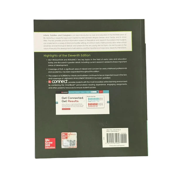 Infants, Toddlers, and Caregivers is an ideal introduction to care and education in the first three years of life, featuring a respectful approach inspired by field pioneers Magda Gerber and Dr. Emmi Pikler. The program provides practical information based on theoretical and research foundations that students can implement in a variety of infant and toddler settings. With the impacts of school readiness and technology in early childhood education today, this program focuses on the value of free play, the development of self-reliance, and the importance of responsive, respectful interactions. The Connect course for this offering includes SmartBook, an adaptive reading and study experience which guides students to master, recall, and apply key concepts while providing automatically-graded assessments.McGraw-Hill Connect® is a subscription-based learning service accessible online through your personal computer or tablet. Choose this option if your instructor will require Connect to be used in the course. Your subscription to Connect includes the following:• SmartBook® - an adaptive digital version of the course textbook that personalizes your reading experience based on how well you are learning the content.• Access to your instructor’s homework assignments, quizzes, syllabus, notes, reminders, and other important files for the course.• Progress dashboards that quickly show how you are performing on your assignments and tips for improvement.• The option to purchase (for a small fee) a print version of the book. This binder-ready, loose-leaf version includes free shipping.Complete system requirements to use Connect can be found here