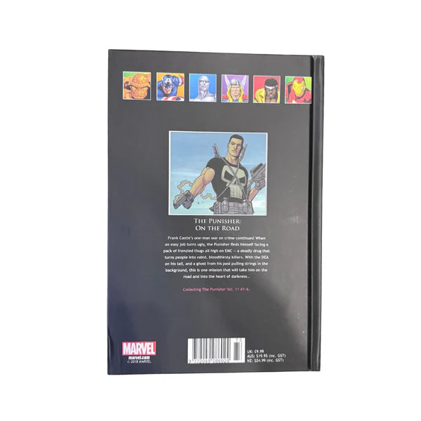 Frank Castle's one-man war on crime continues! When an easy job turns ugly, the Punisher finds himself facing a pack of frenzied thugs all high on EMC — a deadly drug that turns people into rabid, bloodthirsty killers. With the DEA on his tail, and a ghost from his past pulling strings in the background, this is one mission that will take him on the road and into the heart of darkness...