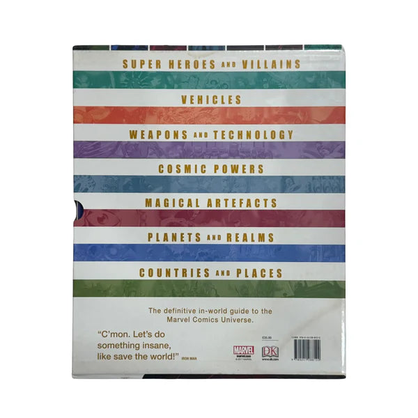 This definitive in-world guide to the Marvel Comics Universe features, in chronological order, every significant Marvel Comic character, location, vehicle, and weapon in the company's illustrious history.Go on a fact- and fun-filled journey via the first major Marvel heroes, villains, cowboy stars, and comic characters of the 1940s and 1950s to the iconic, timeless Super Heroes and Super Villains of the Marvel Age of the 1960s and beyond, such as Thor, Hulk, Spider-Man, Black Widow, Doctor Strange, Iron Man, the Avengers, Storm, Loki, and Green Goblin. Further sections feature key vehicles and technology, magical artifacts, planets, countries, and places, plus a glimpse behind the scenes into Marvel Comics' creative processes and techniques. Cover artwork is by esteemed comic book artist Adi Granov. Including authoritative text by Marvel Comics experts, spectacular artwork from the original comic books, and 2 exclusive prints all presented in a stunning slipcase.Foreword by Roy Thomas.Sections include: Super heroes and villains, vehicles, weapons and technology, cosmic powers, magical artefacts, planets and realms and countries and places.© 2017 MARVEL